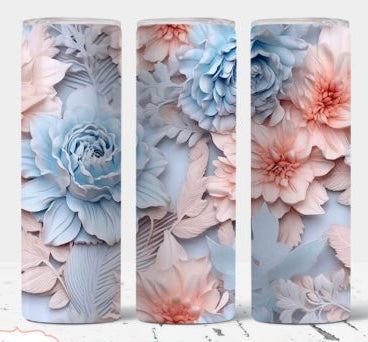 Tumblers are 20oz skinny style with rubber bottom. This tumbler comes with both stainless steel and plastic straws.