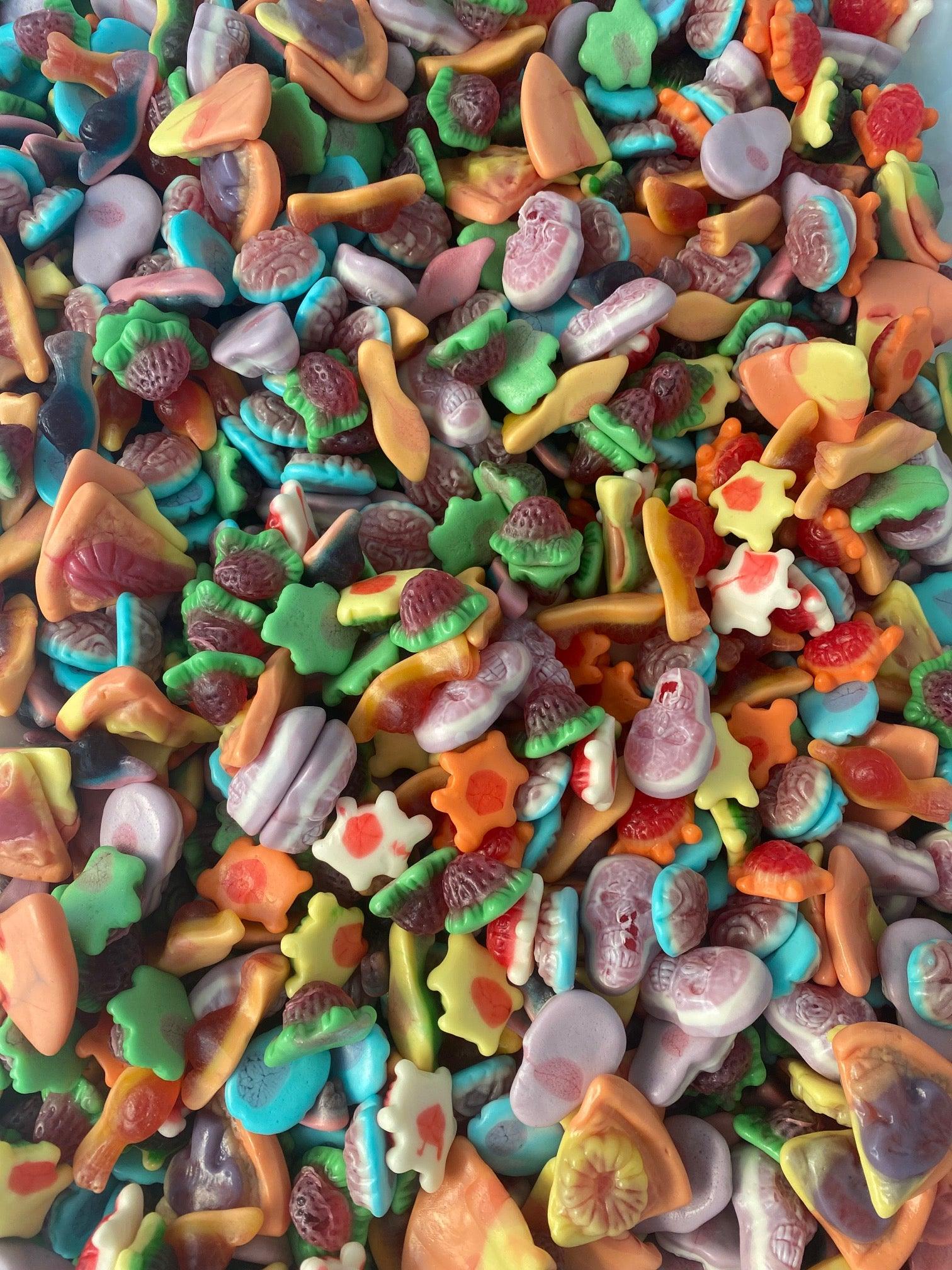 Jelly filled whales, brains, eyeballs, turtles and skulls make up this delicious half pound mix.