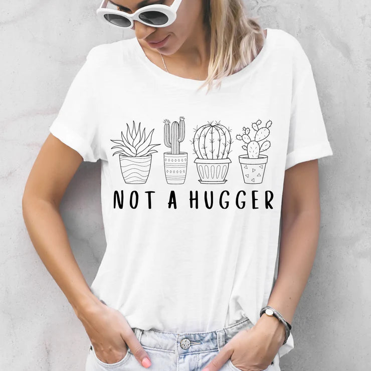 This Not a Hugger t-shirt is sure to make a statement. Not only is it super soft and comfortable but is customizable with your choice of shirt color from the listed options.